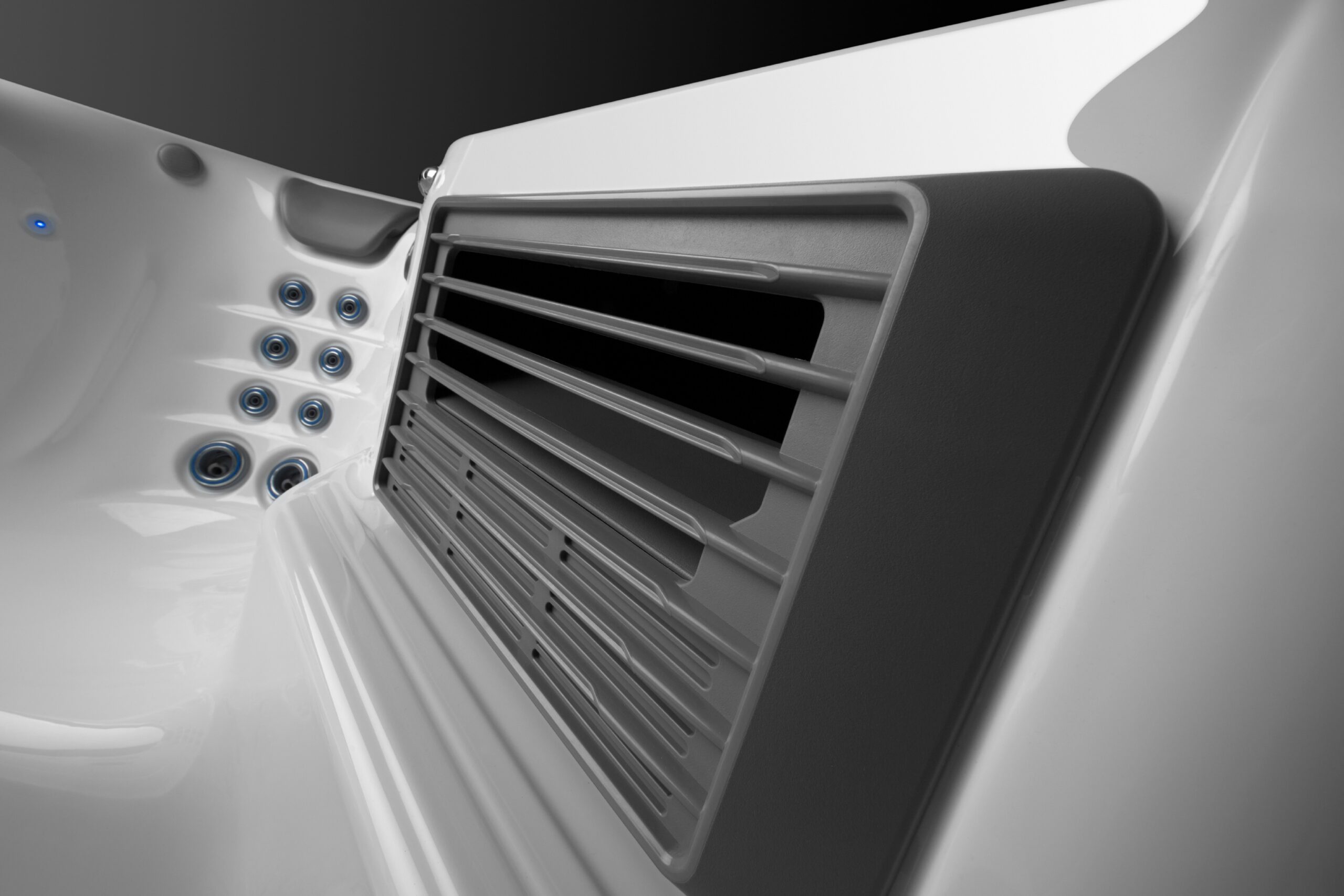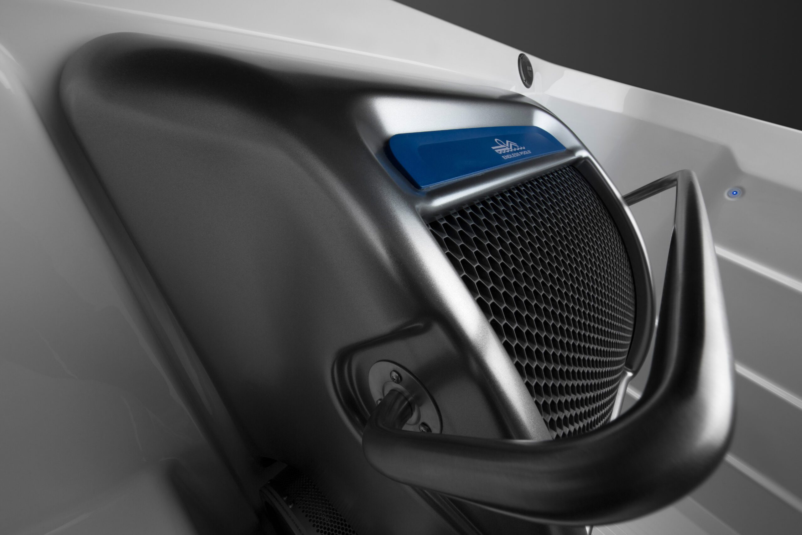 La máquina de natación Endless Pools® utiliza un sistema hidráulico avanzado que genera una corriente laminar ancha y profunda, más ancha que el cuerpo y más profunda que cada brazada. Gracias a sus rejillas de acondicionamiento, el flujo de agua se suaviza y redirige, ofreciendo una experiencia de nado sin turbulencias.