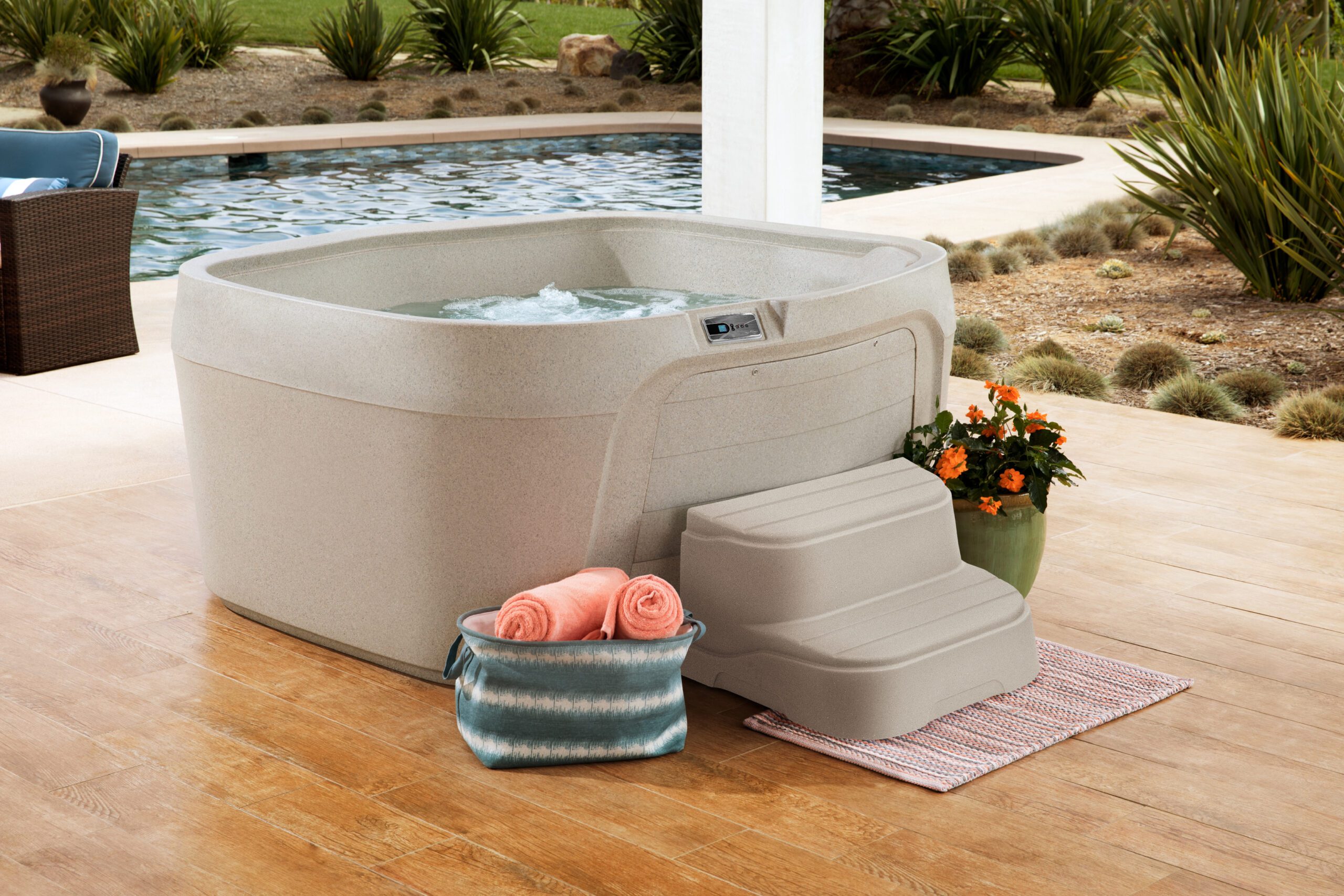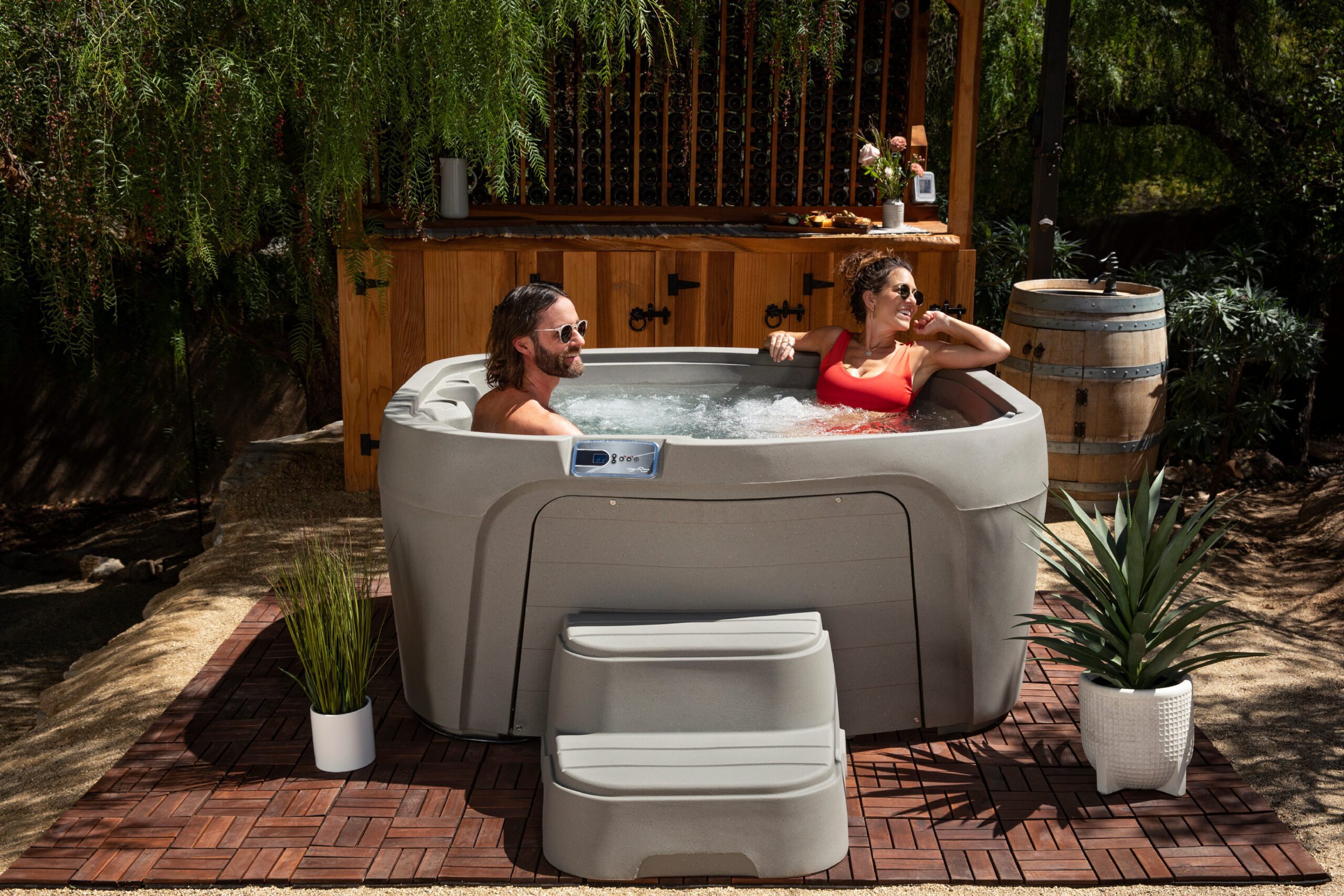 Los spas Freeflow® están diseñados en una sola pieza rotomoldeada, lo que los hace extremadamente duraderos y fáciles de instalar en casi cualquier espacio: patios, balcones, terrazas o jardines.