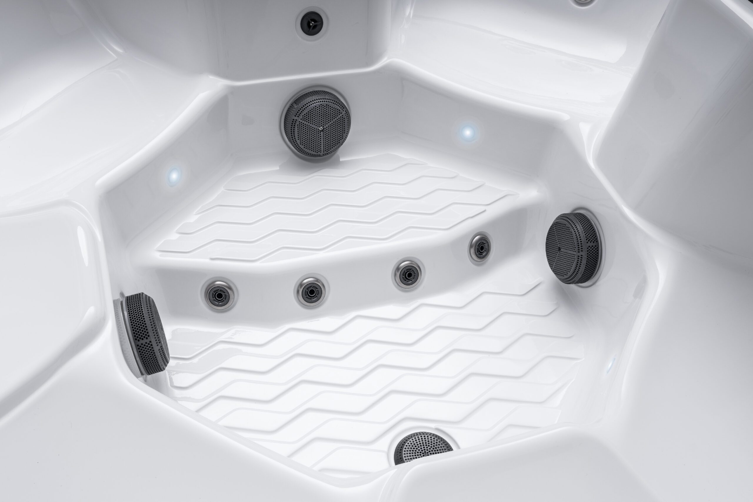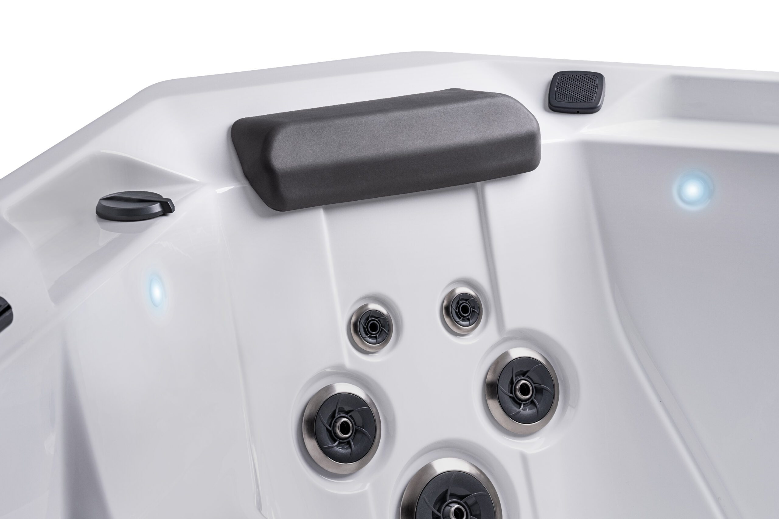 Cada spa HotSpring está cuidadosamente diseñado para deleitar los sentidos, combinando acabados sofisticados, iluminación LED ambiental, esquinas metálicas elegantes y detalles únicos que realzan su estética.